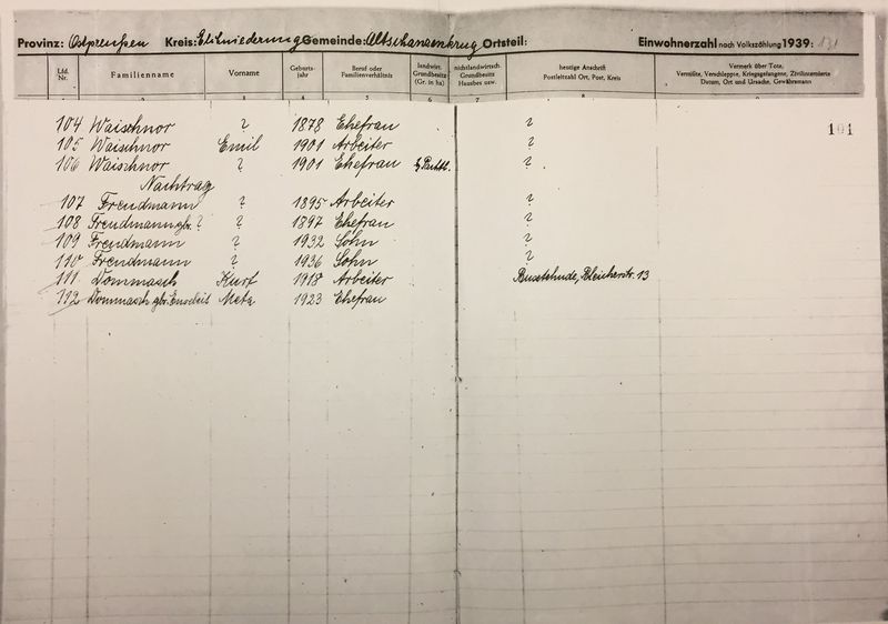 Einwohnerliste zum Zeitpunkt der Räumung Okt. 1944 |