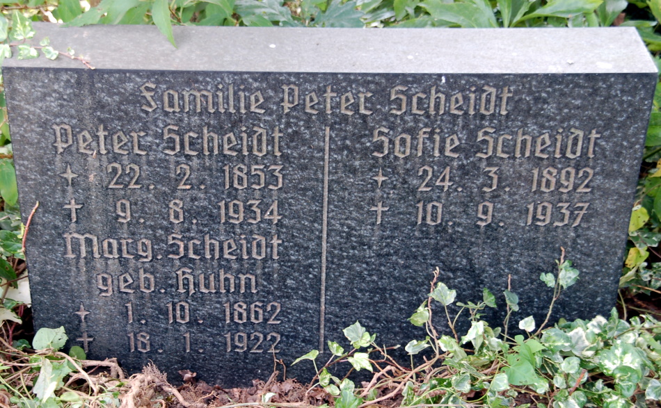 Grabmal von Familie Peter Scheidt auf dem Friedhof von Rommerskirchen-Hoeningen | ||||