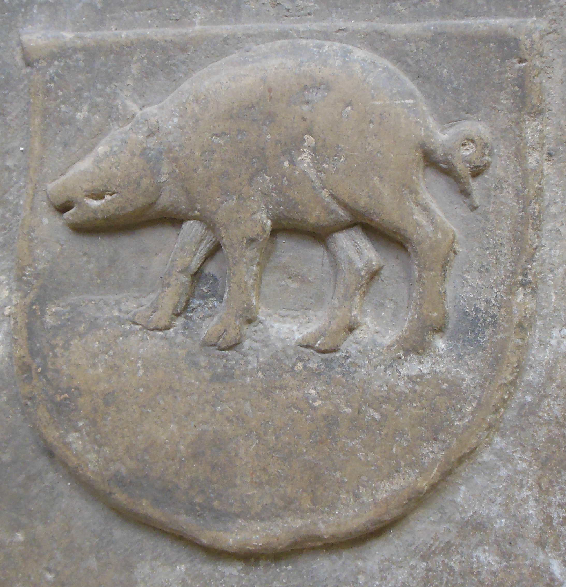 Grabplatte Suinesbiunt, Schweinespeunt, Schweinesbein |