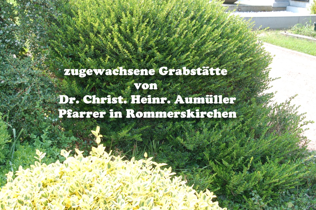 Die ungepflegte Grabstätte von Dr. Christian Heinrich Aumüller, Pfarrer in Rommerskirchen | ||||