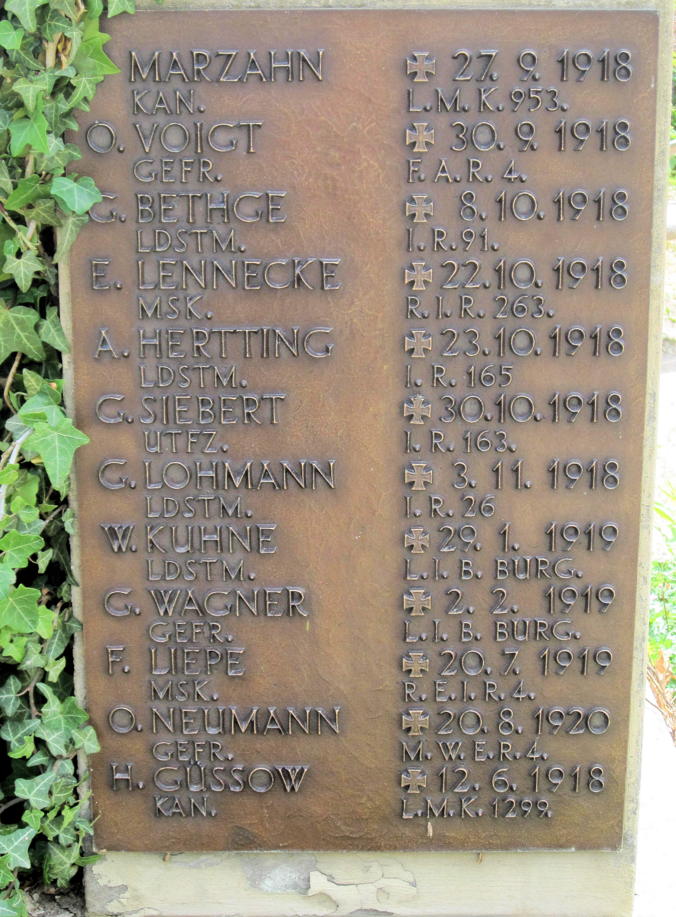 Ziesar/Brandenburg: Kriegerdenkmal 1914-18 - Namenstafel am Sockel |