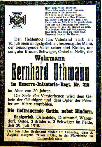 Gefallene aus Ostenfelde im 1. Weltkrieg/Bernard Uthmann
