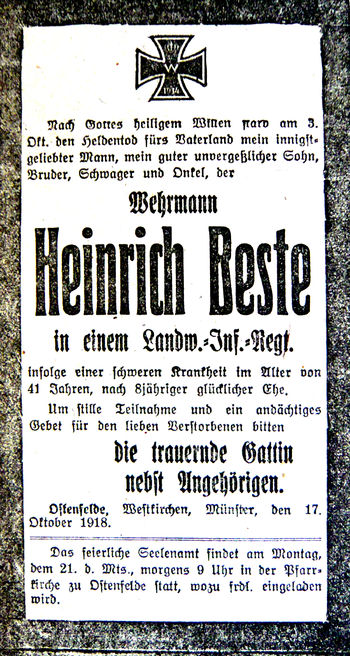 Gefallene aus Ostenfelde im 1. Weltkrieg/Beste, Heinrich