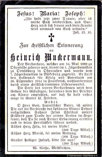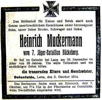 Gefallene aus Ostenfelde im 1. Weltkrieg/Heinrich Muckermann