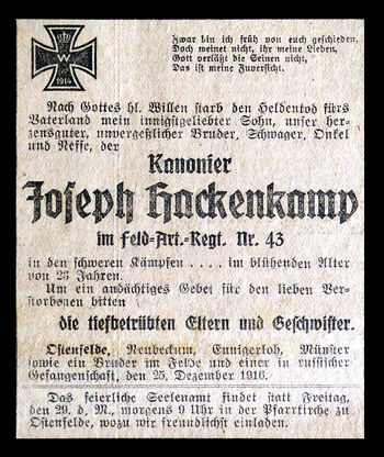 Gefallene aus Ostenfelde im 1. Weltkrieg/Josef Hackenkamp