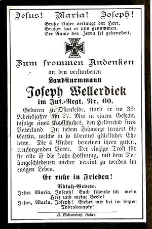 Totenzettel von Joseph Wellerdiek