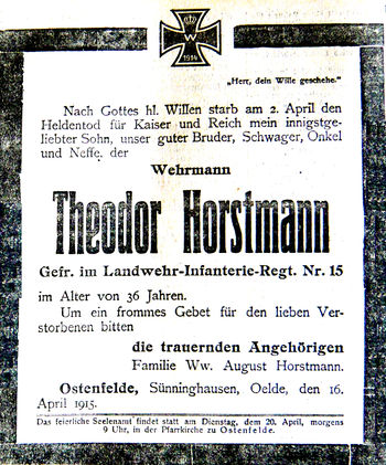 Gefallene aus Ostenfelde im 1. Weltkrieg/Theodor Horstmann