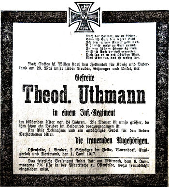 Gefallene aus Ostenfelde im 1. Weltkrieg/Theodor Uthmann