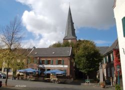 Vor dem Eingang zur St. Georgskirche steht als hohe Steinsäule das Denkmal für die Opfer der beiden Weltkriege. Hoch oben auf der Säule mit den Namen der Opfer ist die Statue des Heiligen Georg auf einem Pferd als Drachentöter dargestellt.
