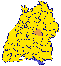 ![]() Lokalisierung des Landkreises Esslingen innerhalb des Bundeslandes Baden-Württemberg |