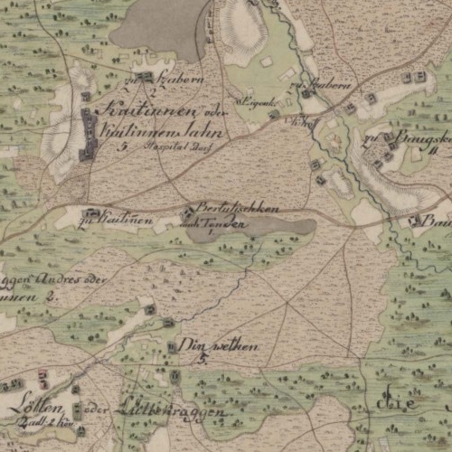 Grünheide (Ksp.Memel), auch Adlig Grünheide (1873 vereinigt mit Bertulischken oder Tenden oder Tendischken, (1759 Taufe eines Mikkel Tendis aus Tendžiu)), Kreis Memel, Ostpreußen.