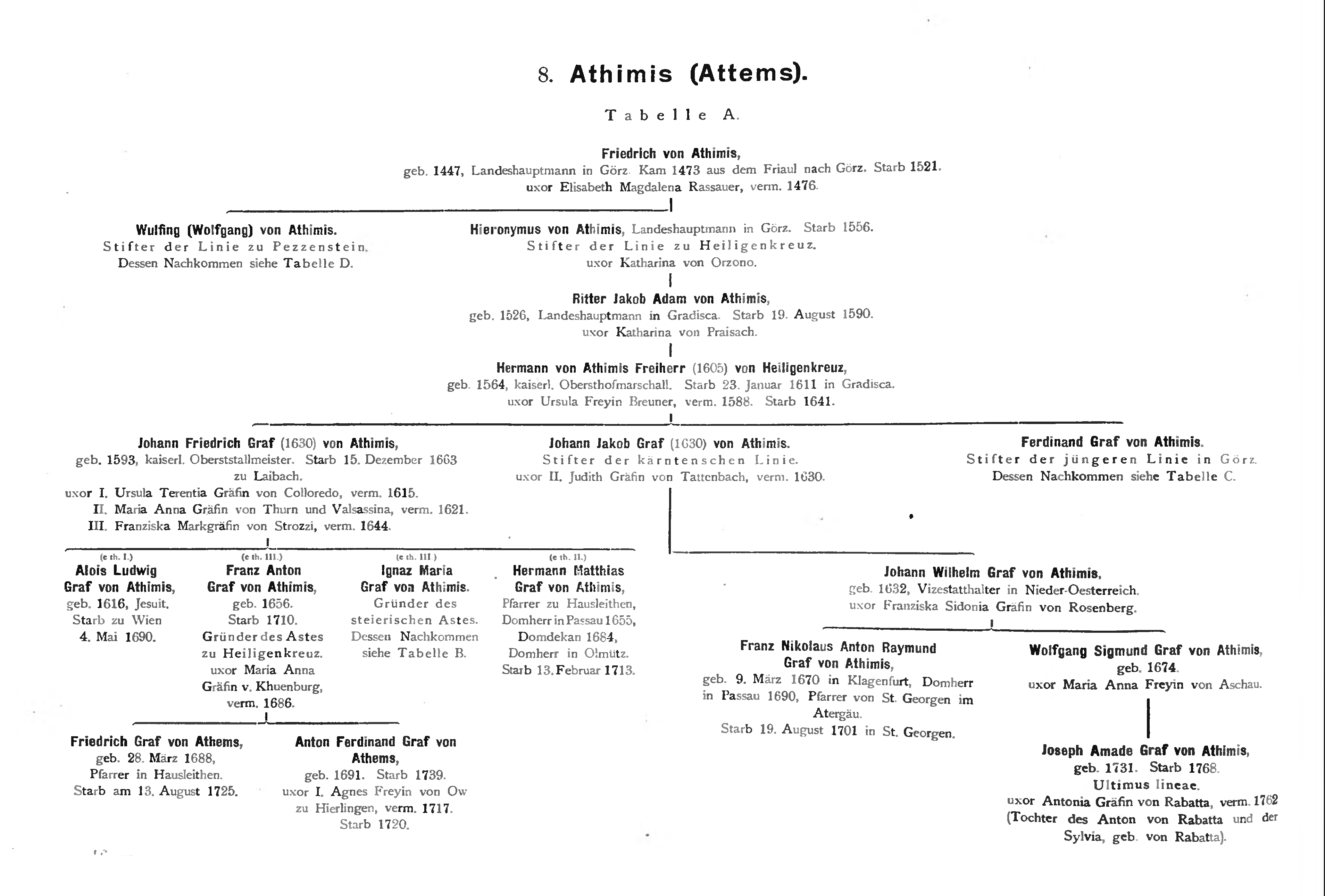 < 212 Stammtafeln adeliger Familien denen geistliche Würdenträger des Bistums Passau entsprossen sind