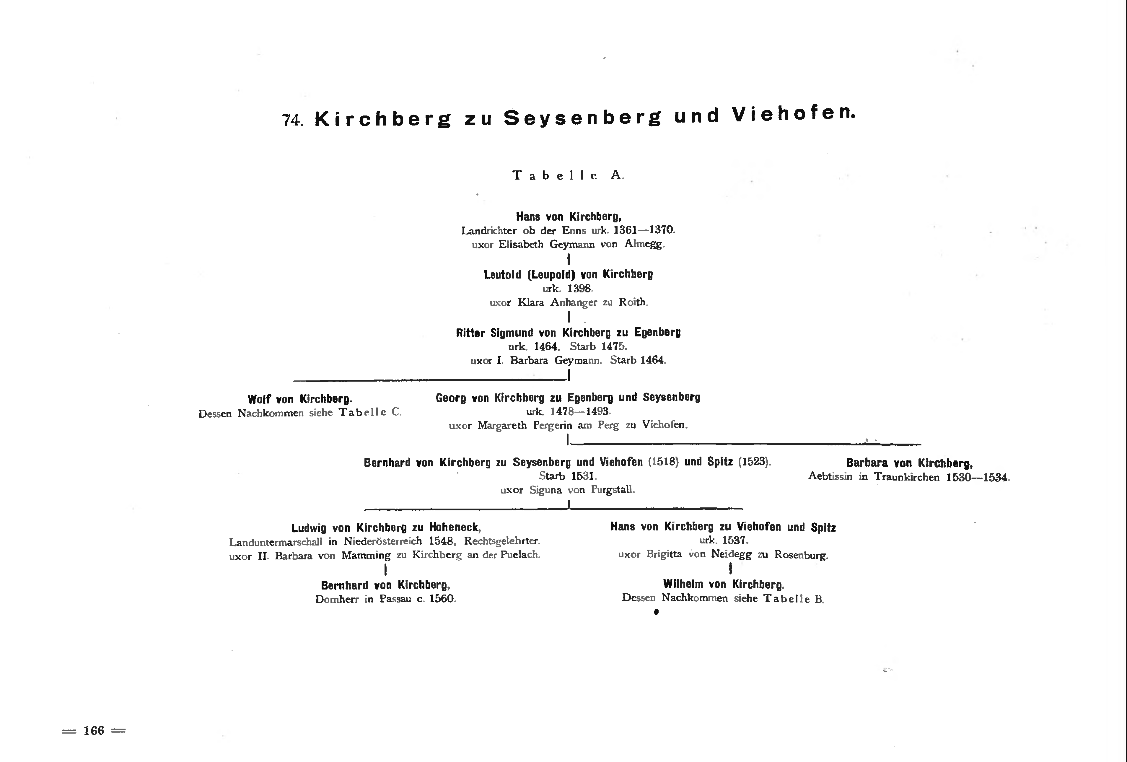 212 Stammtafeln adeliger Familien denen geistliche Würdenträger des Bistums Passau entsprossen sind/166