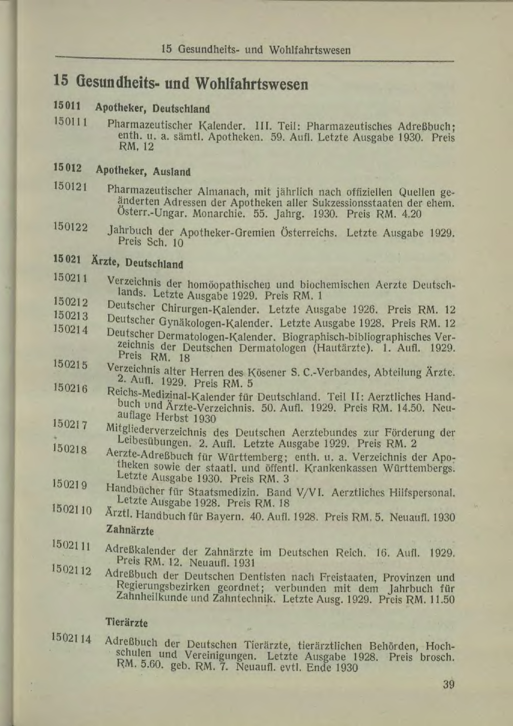 | 15 021 6 | Reichs-Medizinal-Kalender für Deutschland. Teil II: Aerztliches Hand-ouch und Arzte -Verzeichnis. 50. Aufl. 1929. Preis RM. 14.50. Neuauflage Herbst 1930 | ||