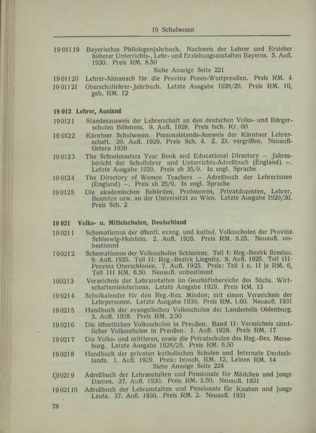 | 19 021 9 | Adreßbuch der Lehranstalten und Pensionate für Mädchen und junge Damen. 37. Aufl. 1930. Preis RM. 2.50. Neuaufl. 1931 |