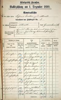 Volkszählung am 1. Dezember 1890