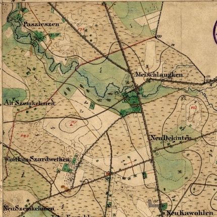 - ↑ Karte des TILSITER KREISES von F. A. v. Witzleben, Berlin 1846, Verlag v. C. Heymann