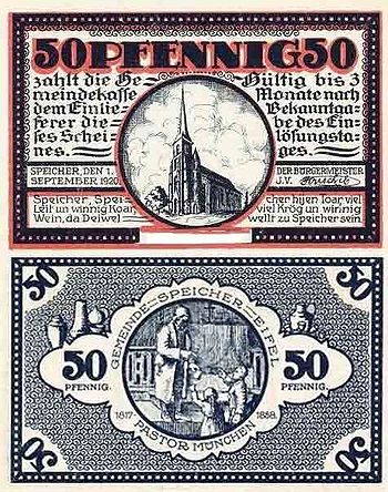 - Zuständigkeit/Einrichtungen: Volksschule, Bestellungspostamt, Eisenbahnstation Speicher u. Philippsheim 6 km, Feuerwehr (frw), Elektrizitätsversorgung, Wasserversorgung