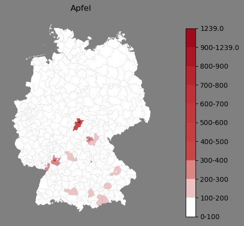 Absolute Verteilung des Namens Apfel (1890)Direkt zur Karte Absolute Verteilung des Namens "Apfel" um 1890 im damaligen Deutschen Reich Sie können die Karte innerhalb des Fensters zoomen und verschieben. |