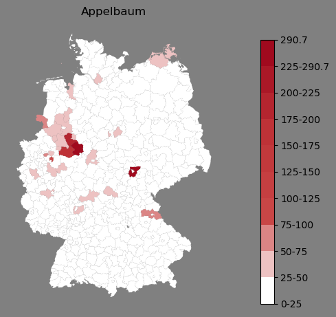 Absolute Verteilung des Namens Appelbaum (1890)Direkt zur Karte Absolute Verteilung des Namens "Appelbaum" um 1890 im damaligen Deutschen Reich Sie können die Karte innerhalb des Fensters zoomen und verschieben. |