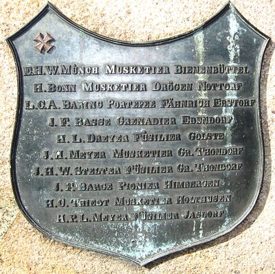 | 1875 | Einweihung des Denkmals, Finanzierung durch Spenden des Denkmalsvereins und vieler Einwohner des Amtes Medingen. Die vier im Krieg gegen Dänemark erbeuteten Kanonen spendete der Kaiser aus seinem Depot in Magdeburg. |