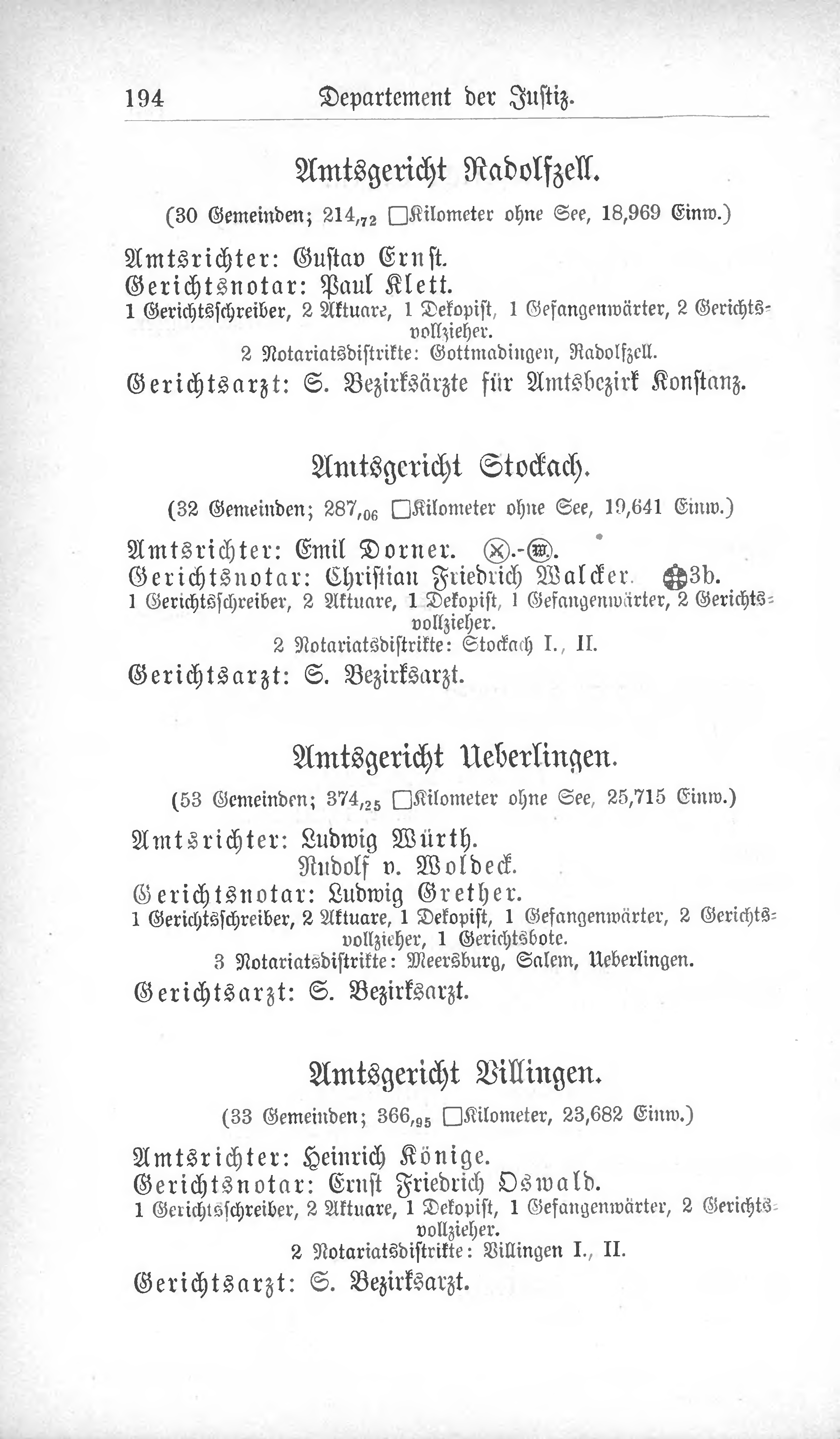 Gerichtsarzt: S. Bezirksärzte für Amtsbezirk Konstanz.