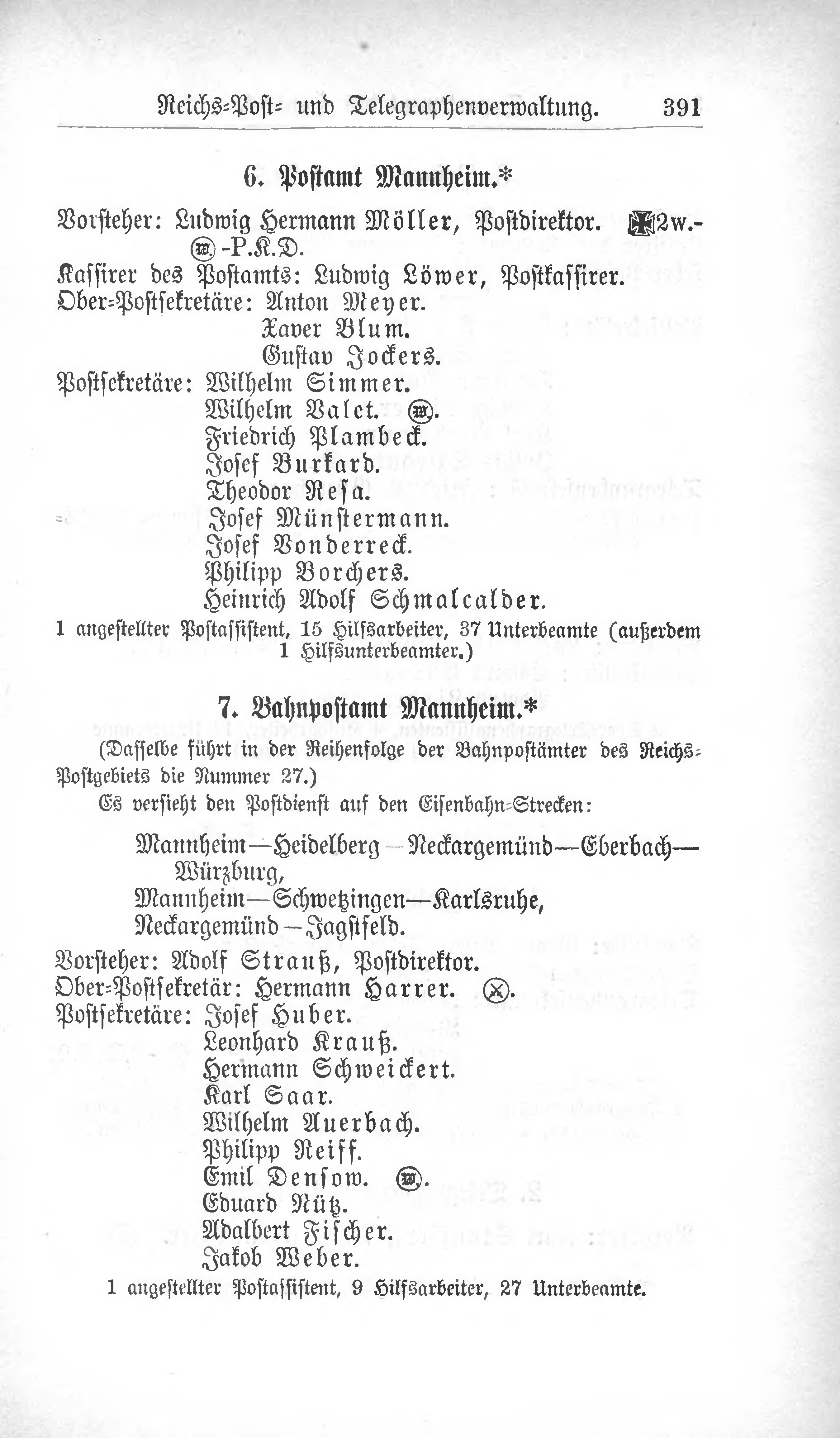 - 1 angestellter Postassistent, 15 Hilfsarbeiter, 37 Unterbeamte (außerdem 1 Hilfsunterbeamter.)
