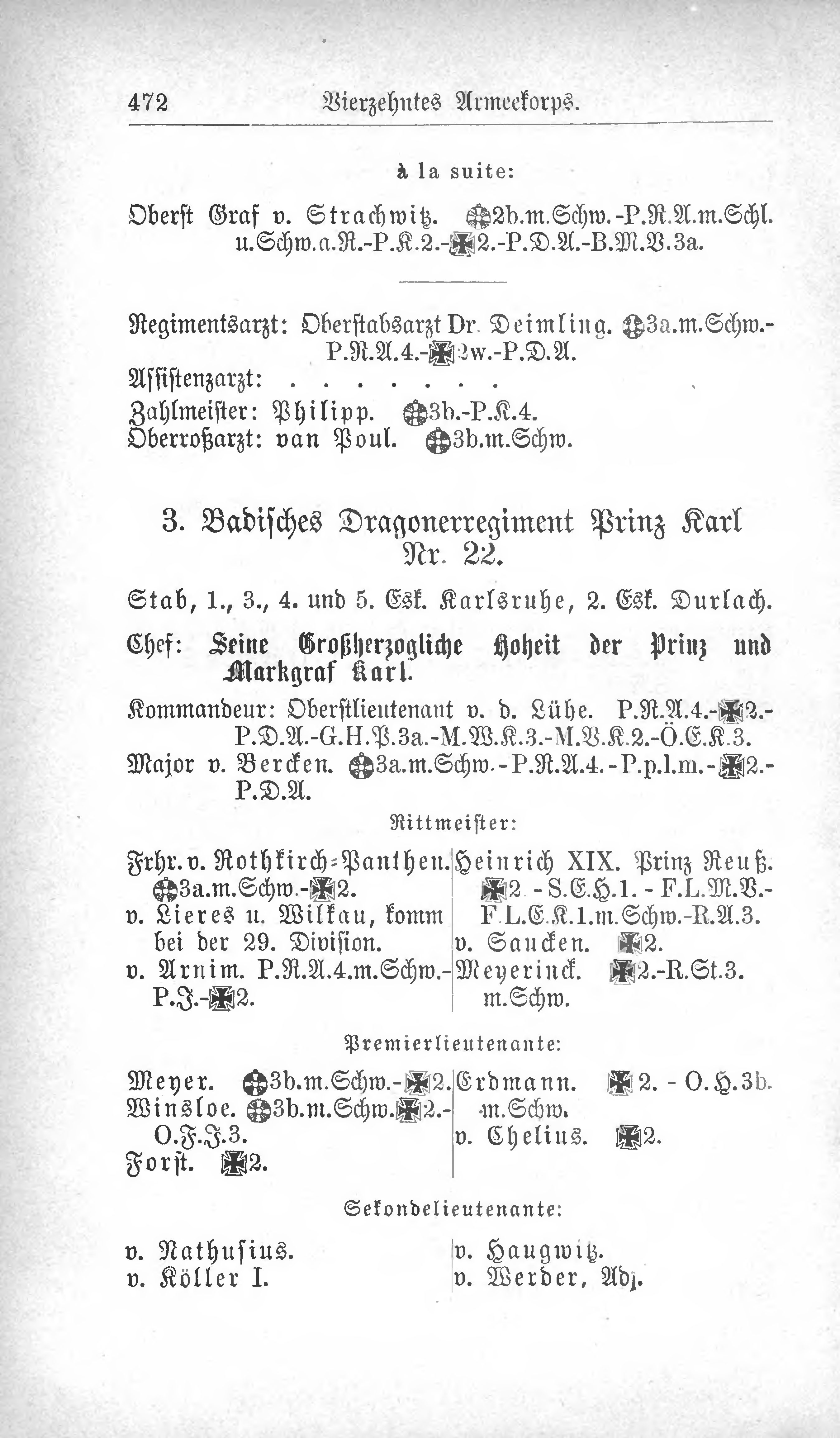 3. Badisches Dragonerregiment Prinz Karl Nr. 22.