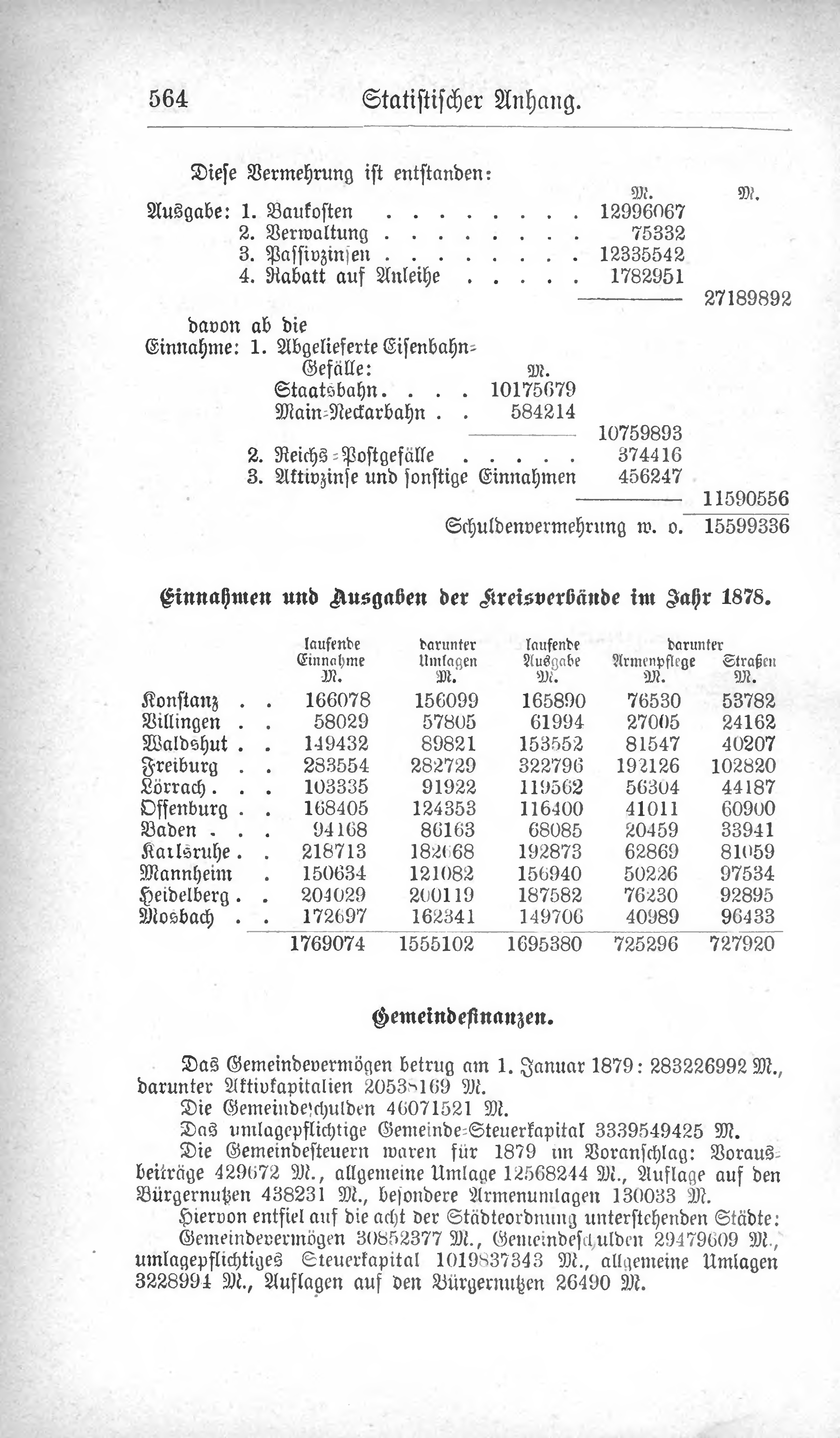 Die Gemeindesteuern waren für 1879 an Voranschlag: Vorausbeiträge 428231 M., besondere Armenumlagen 130033 M.