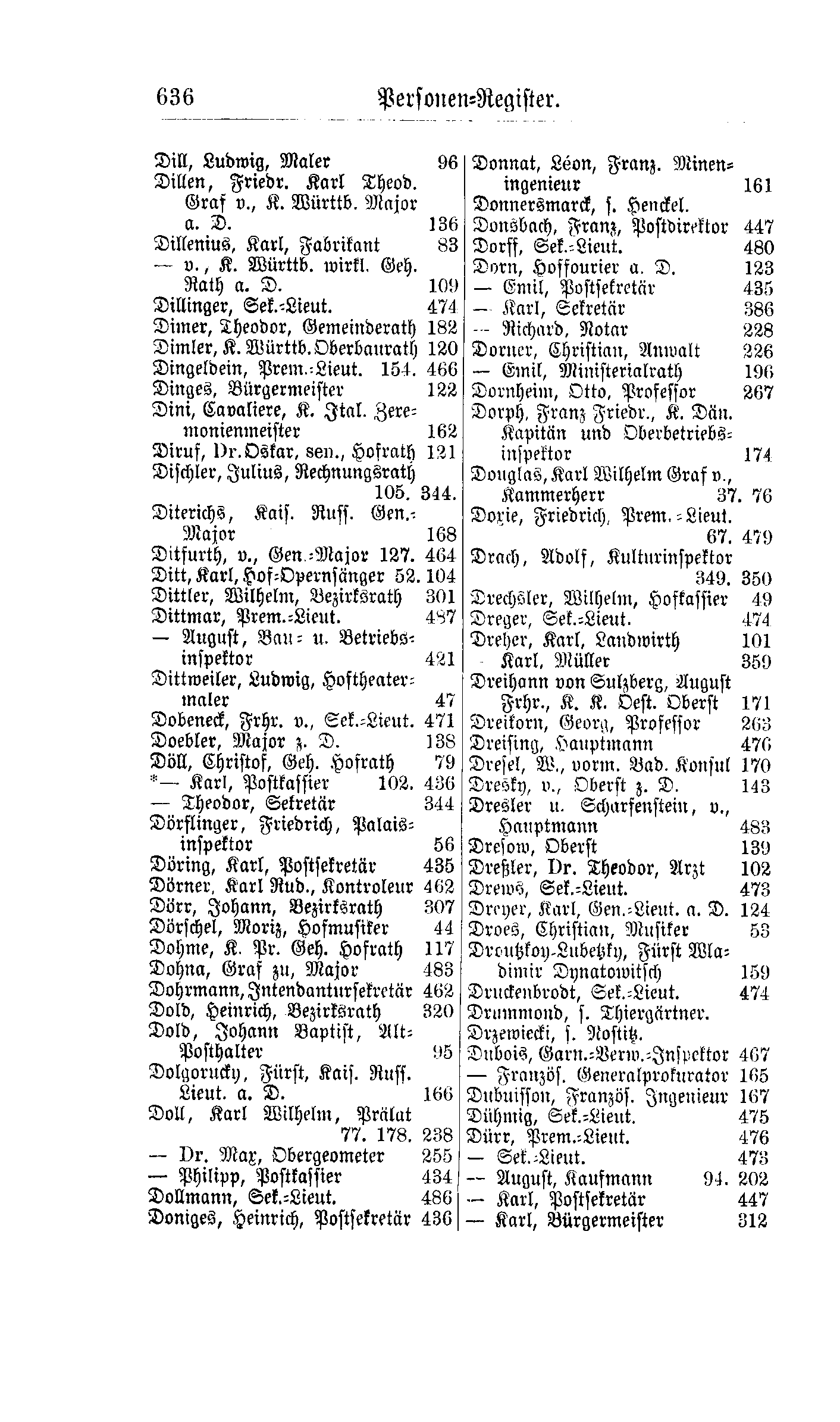 | Dillen, Friedr. Karl Theod., Graf v., K. Württb. Major a. D.