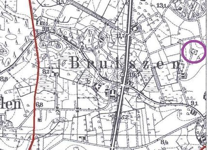 Lage des Friedhofs in Bruiszen im Messtischblatt