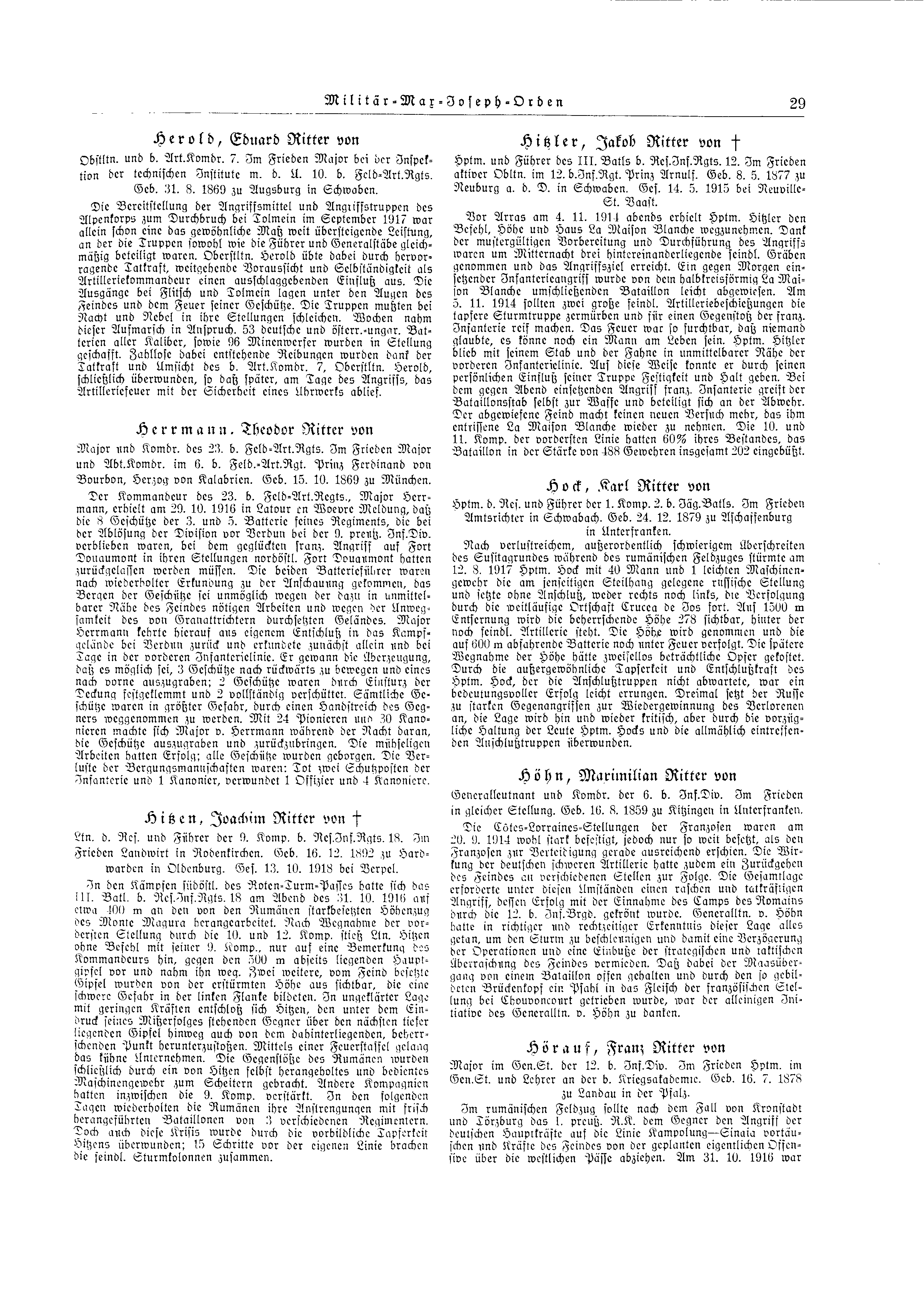 Major im Gen. St. der 12. b. Inf. Div. 12. Im Frieden Hptm. im Gen. St. und Lehrer an der b. Kriegsakademie. Geb. 16.7.1878 zu landau in der Pfalz.