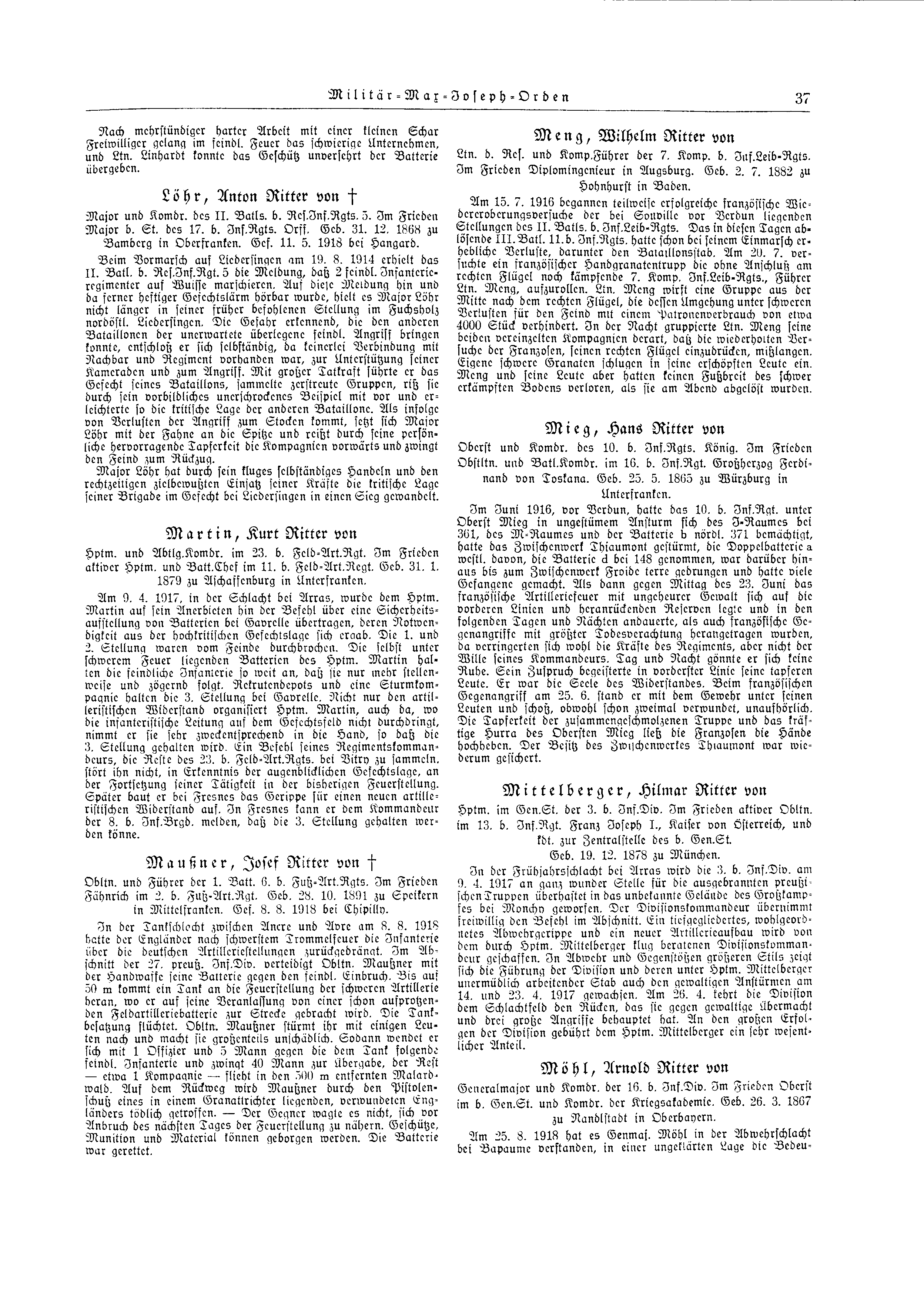 Hptm. im Gen. St. der 3. b. Inf. Div.. Im Frieden aktiver Obltn. im 13. b. Inf. Rgt. Franz Joseph I., Kaiser von Österreich, und kdt. zur Zentralstelle des b. Gen. St. Geb. 19.12.1878 zu München.