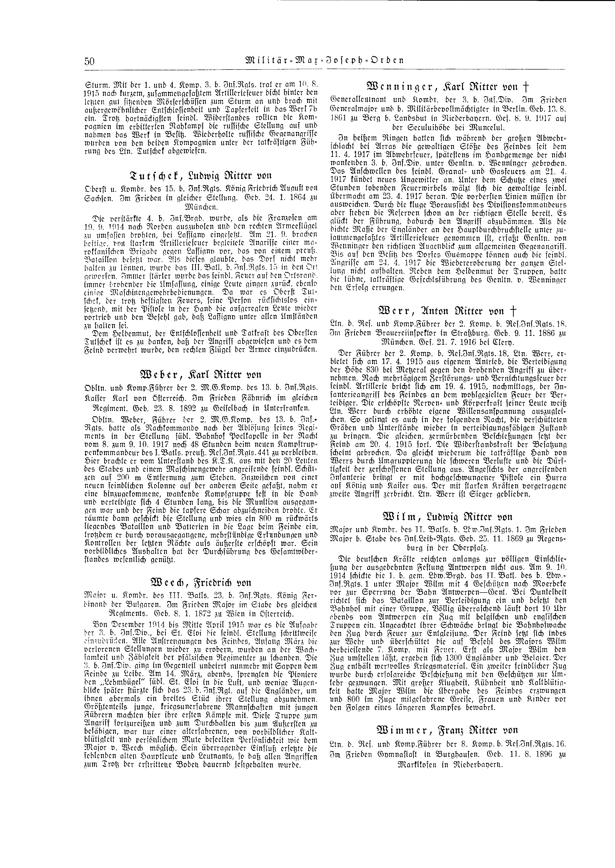 Obltn. und Komp.Führer der 2. M.G.Komp. des 13. b. Inf.Rgts. Kaiser Karl von Österreich. Im Frieden Fähnrich in gleichen Regiment. Geb. 23. 8. 1892 zu Geiselbach in Unterfranken.