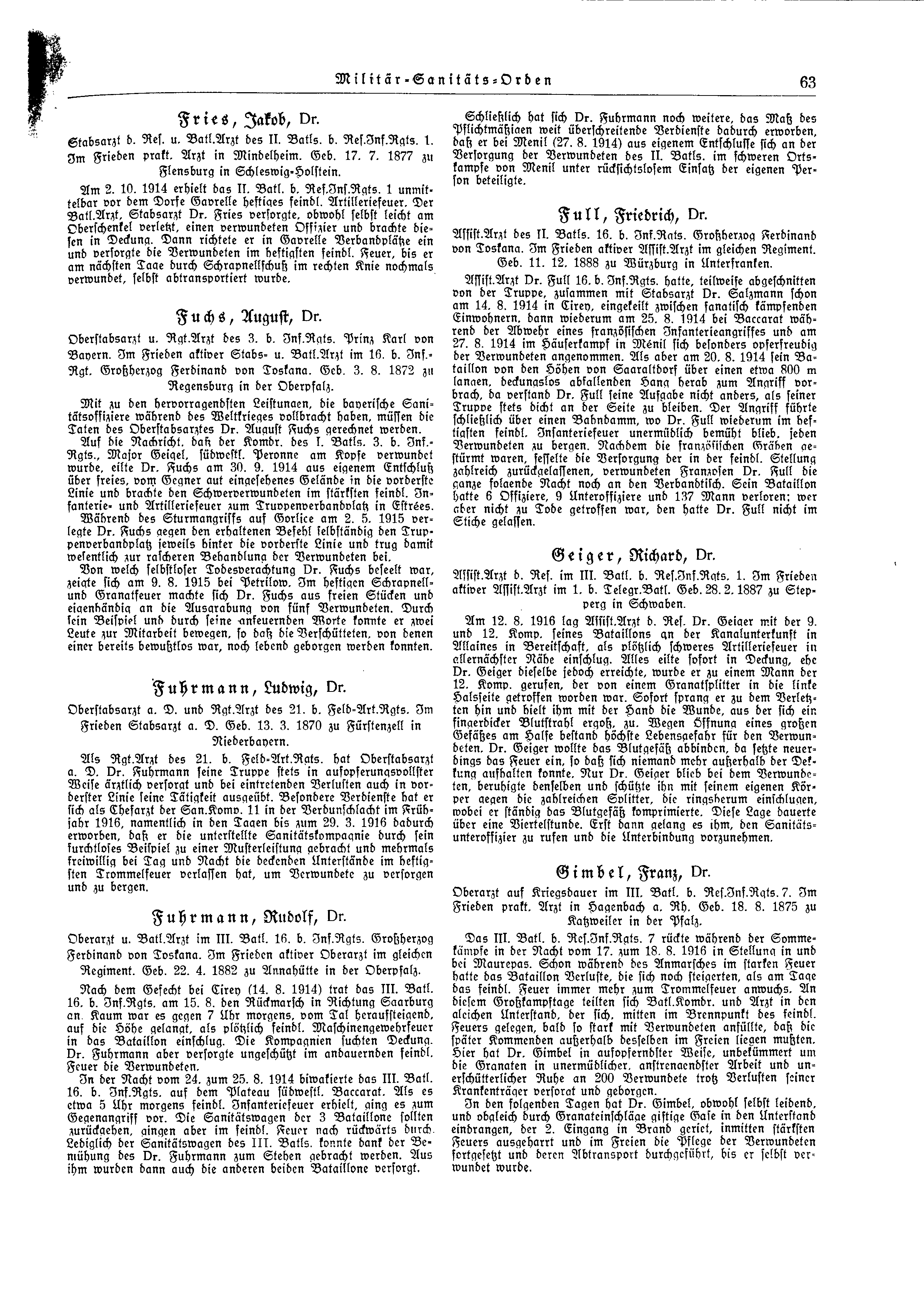 Oberarzt u. Batl.Arzt im III. Batl. 16. b. Inf.Rgts. Großherzog Ferdinand von Toskana. Im Frieden aktiver Oberarzt im gleichen Regiment. Geb. 22. 4. 1882 zu Annahütte in der Oberpfalz.