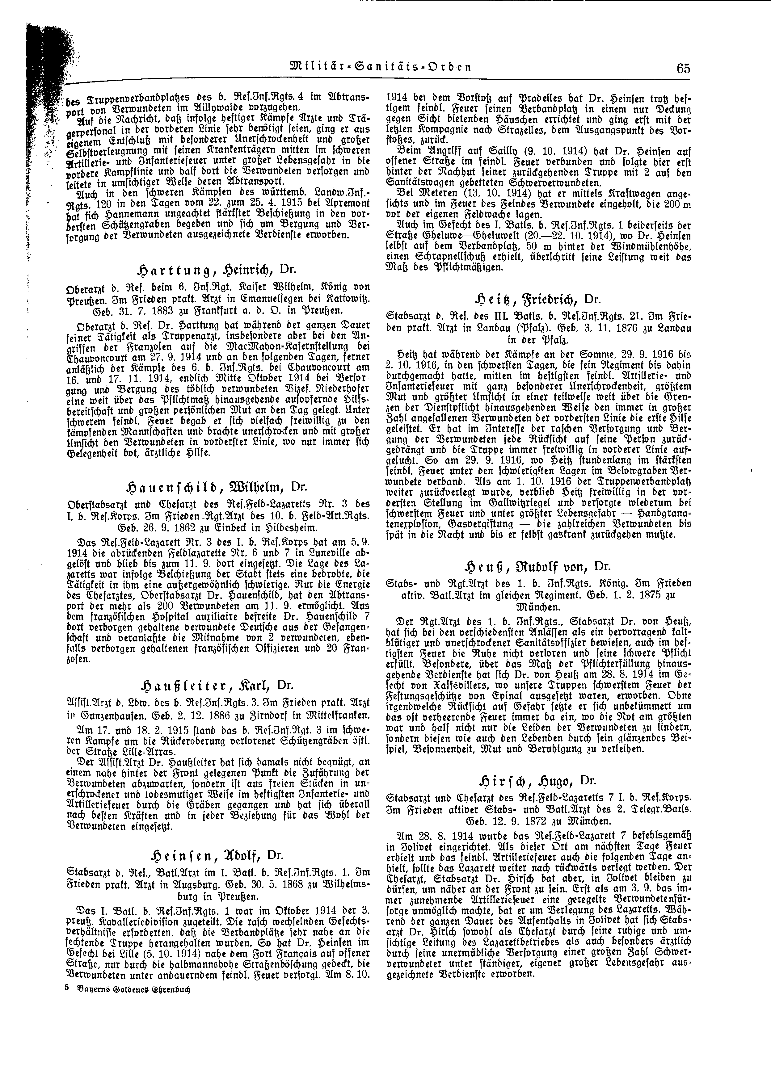 Stabsarzt d. Res., Batl.Arzt im I. BAtl. b. Res.Inf.Rgts.1. Im Frieden prakt. Arzt in Augsburg. Geb. 30. 5. 1888 zu Wilhelmsburg in Preußen.