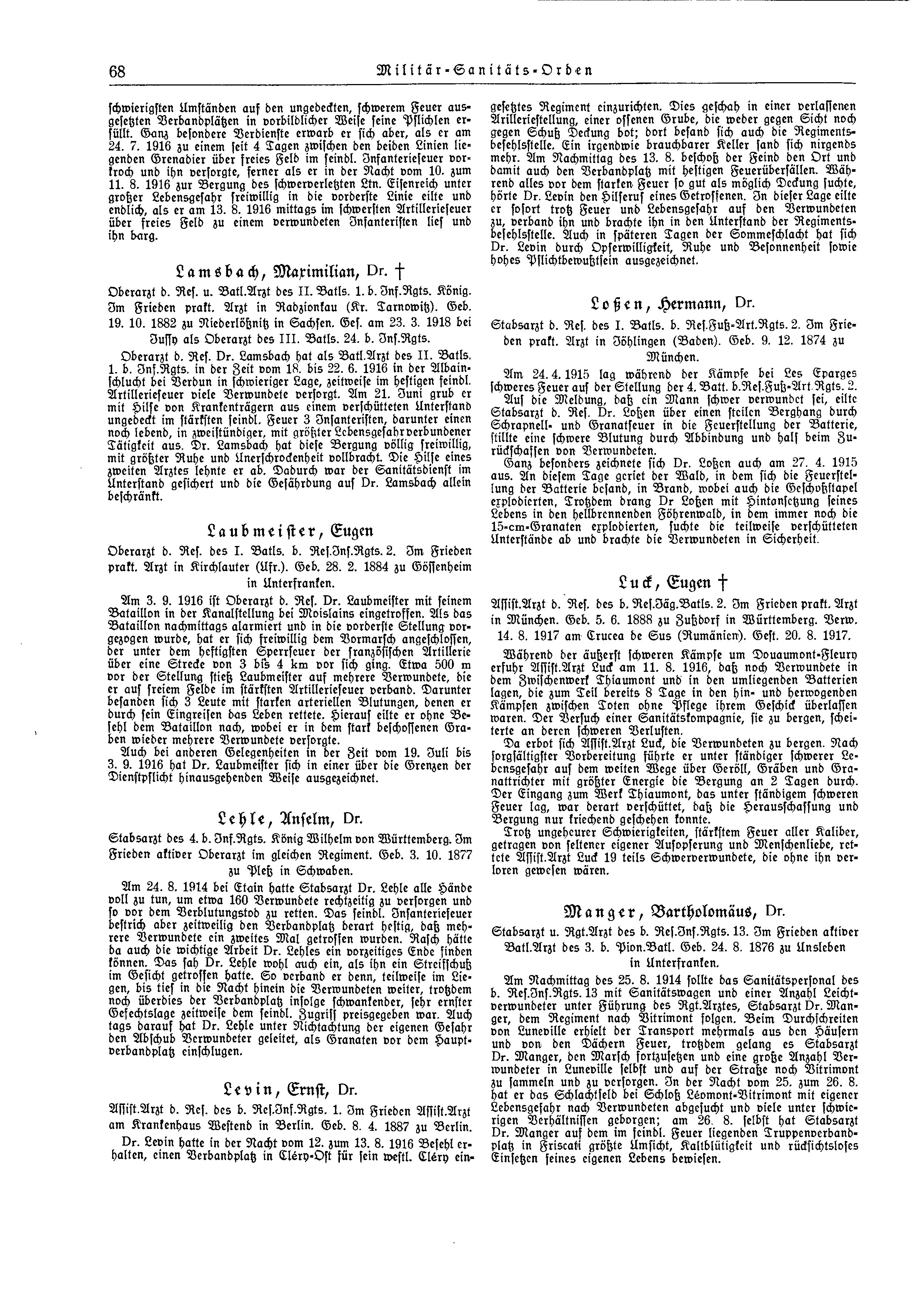Stabsarzt des 4. b. Inf.Rgts. König Wilhelm von Württemberg. Im Frieden aktiver Obeerarzt im gleichen Regiment. Geb. 3. 10. 1877 zu Pleß in Schwaben.