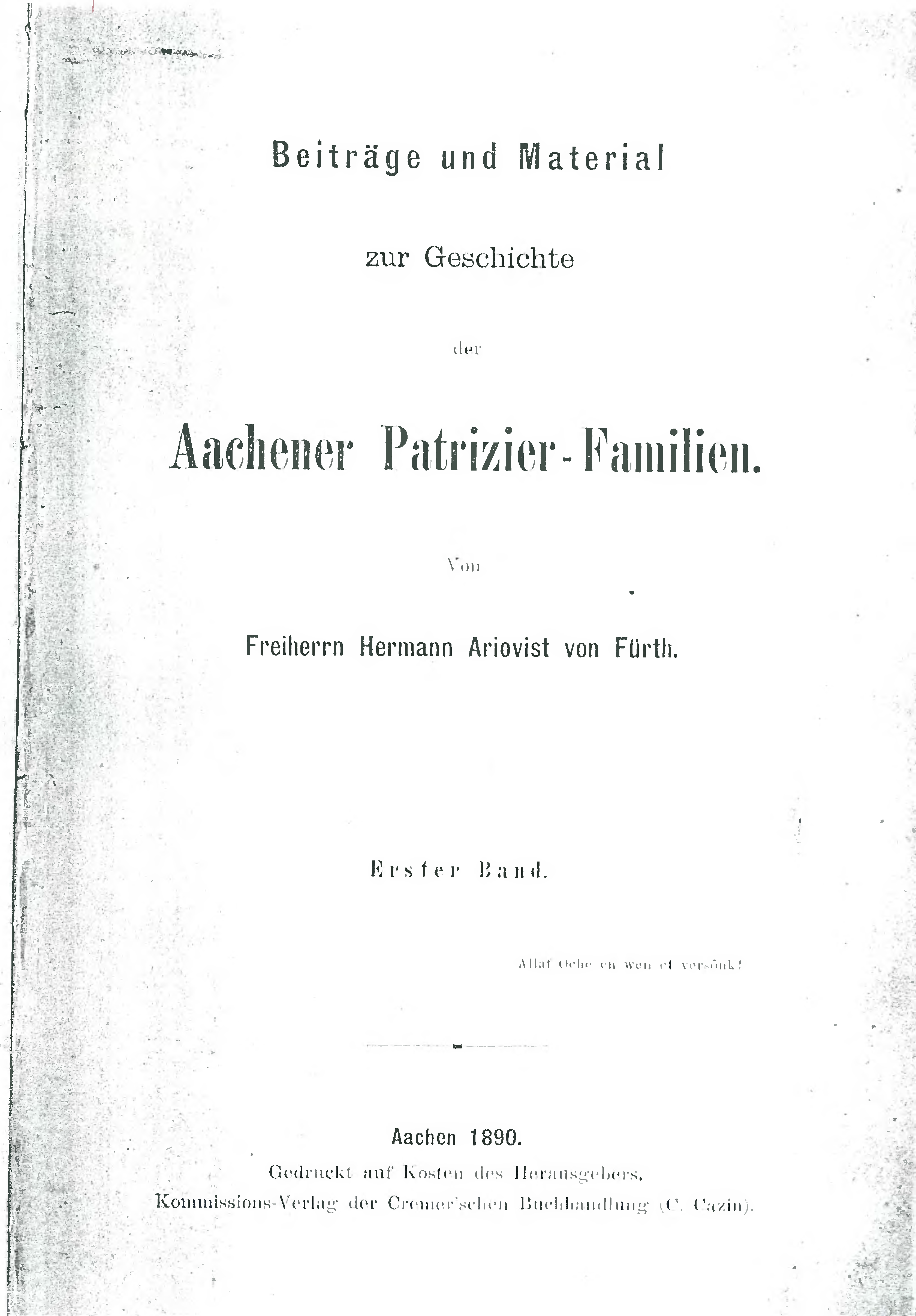 Beiträge und Material zur Geschichte der Aachener Patrizier-Familien, 1. Band/Titel