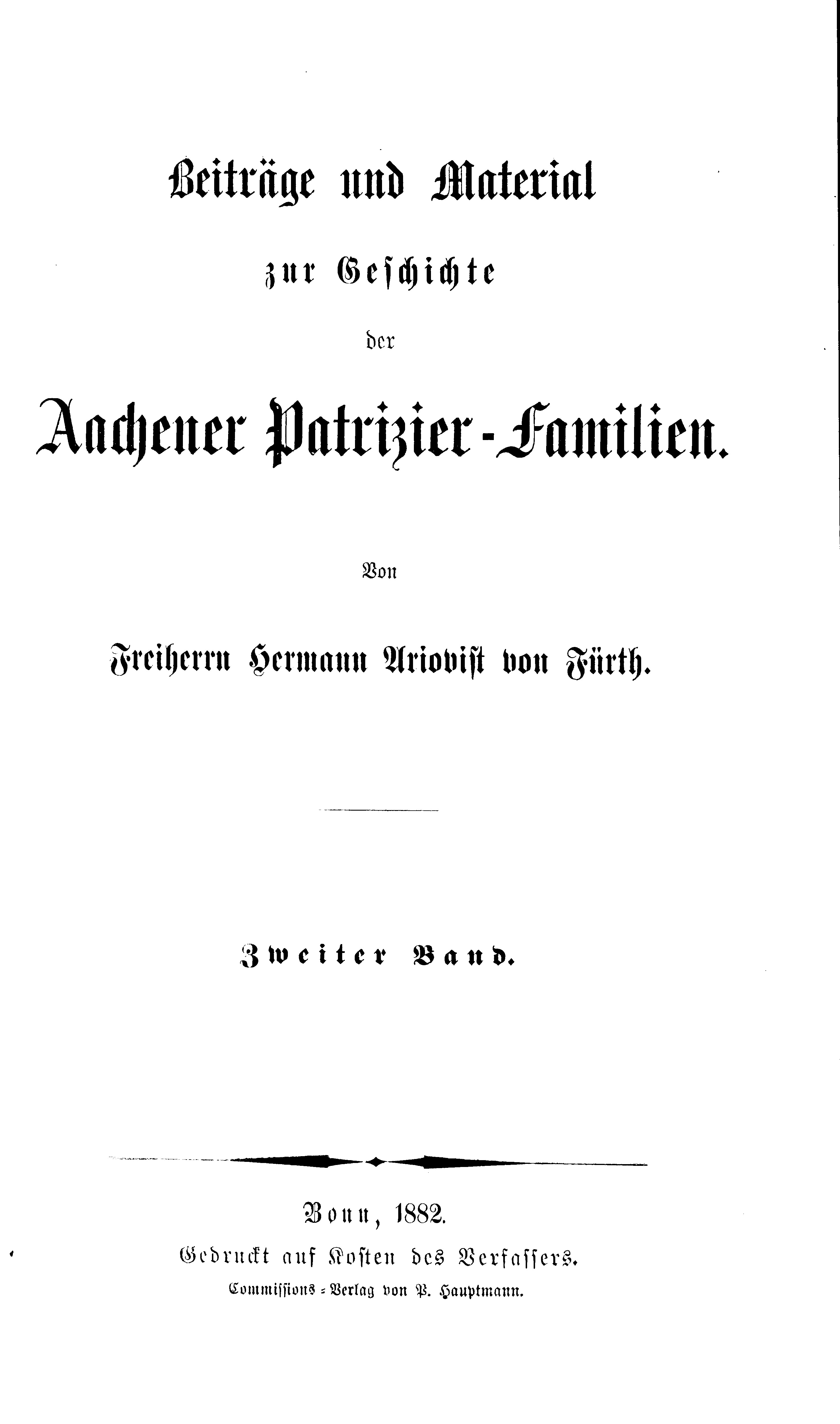 - Beiträge und Material zur Geschichte der Aachener Patrizier-Familien, 1. Band