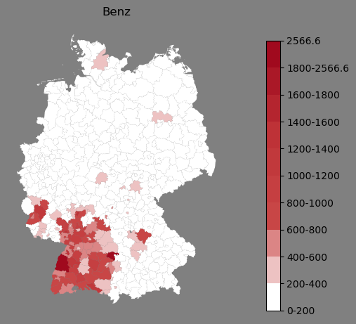 Absolute Verteilung des Namens Benz (1890)Direkt zur Karte Absolute Verteilung des Namens "Benz" um 1890 im damaligen Deutschen Reich Sie können die Karte innerhalb des Fensters zoomen und verschieben. |