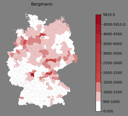 Absolute Verteilung des Namens Bergmann (1890)Direkt zur Karte Absolute Verteilung des Namens "Bergmann" um 1890 im damaligen Deutschen Reich Sie können die Karte innerhalb des Fensters zoomen und verschieben. |
