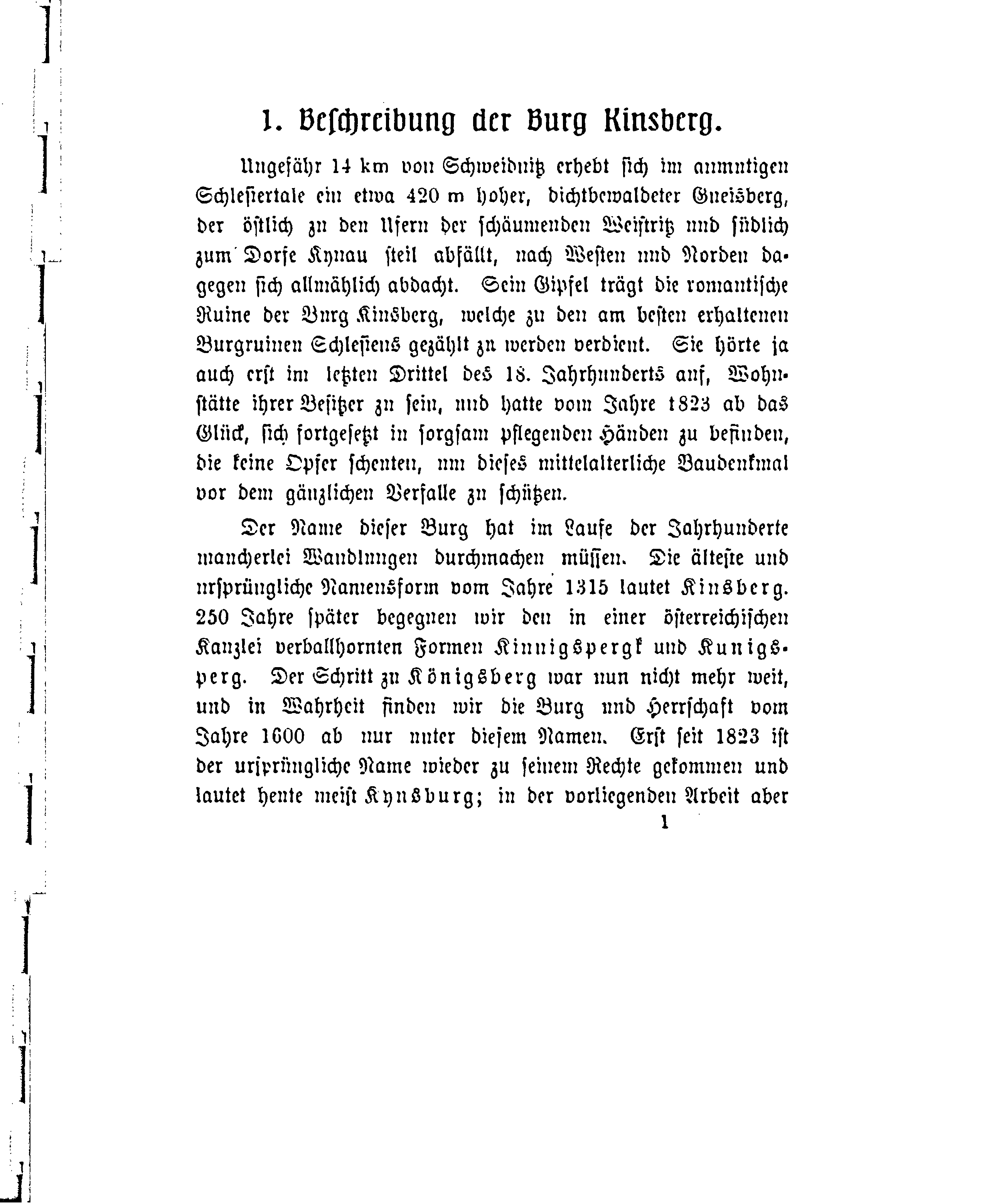 1. Beschreibung der Burg Kinsberg.