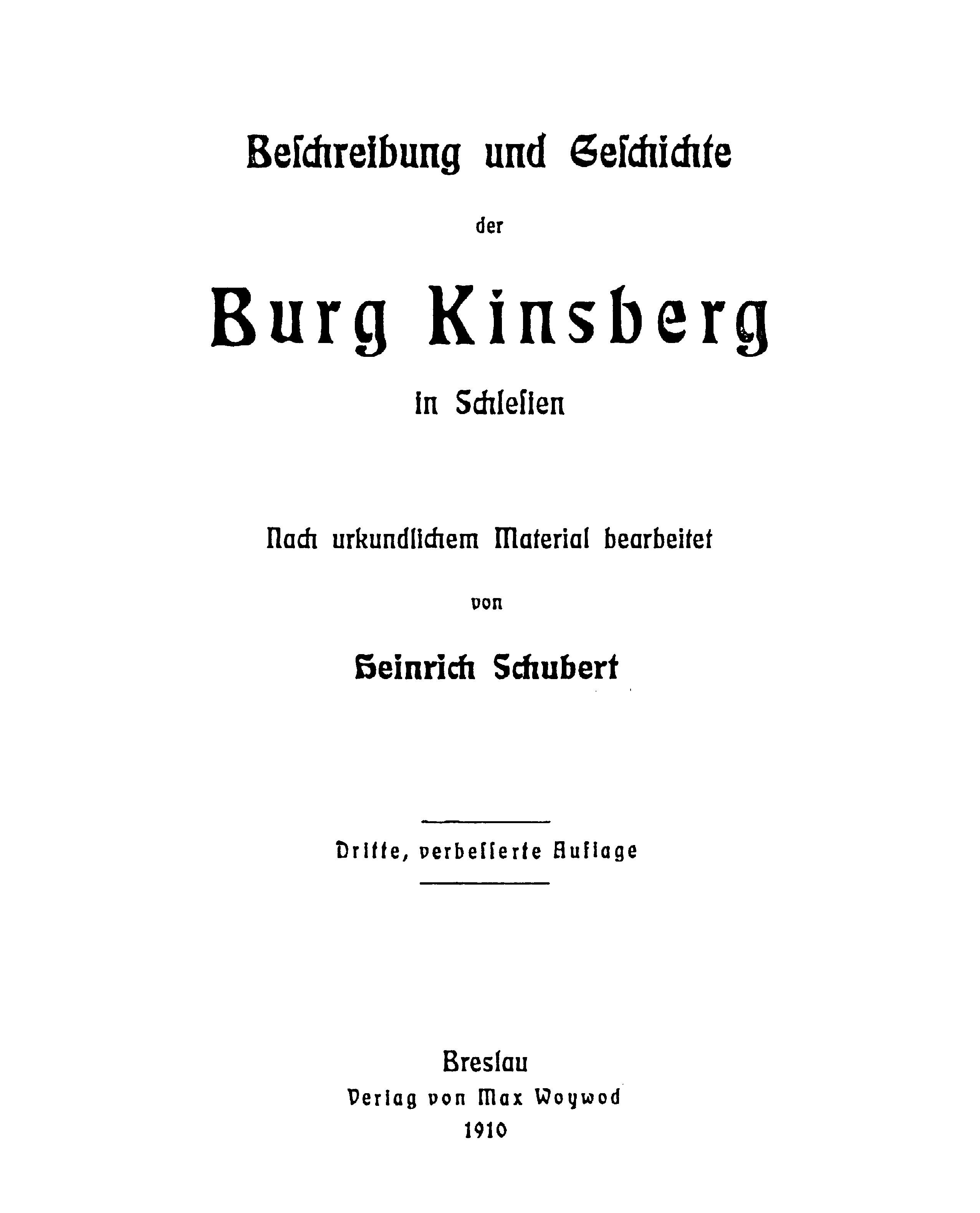 Beschreibung und Geschichte der Burg Kinsberg (1910)/Titel