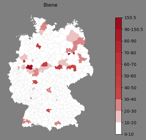 Absolute Verteilung des Namens Biene (1890)Direkt zur Karte Absolute Verteilung des Namens "Biene" um 1890 im damaligen Deutschen Reich Sie können die Karte innerhalb des Fensters zoomen und verschieben. |