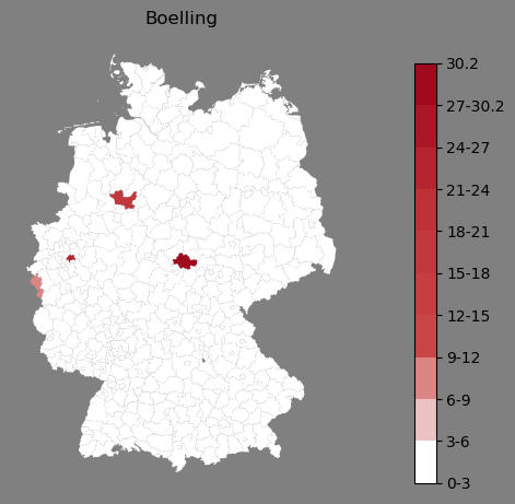 Absolute Verteilung des Namens Boelling (1890)Direkt zur Karte Absolute Verteilung des Namens "Boelling" um 1890 im damaligen Deutschen Reich Sie können die Karte innerhalb des Fensters zoomen und verschieben. |