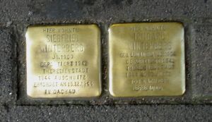 • Hier wohnte Siegfried Winterberg, J. 1900; deportiert 1942 Theresienstadt, 1944 Auschwitz, ermordet am 15. 12. 1944 in Dachau