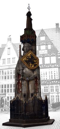 Die Rolandstatue wurde 1404 vor dem Rathaus auf dem Marktplatz aufgestellt.