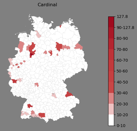Absolute Verteilung des Namens Cardinal (1890)Direkt zur Karte Absolute Verteilung des Namens "Cardinal" um 1890 im damaligen Deutschen Reich Sie können die Karte innerhalb des Fensters zoomen und verschieben. |