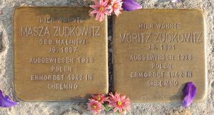 - Hier wohnte, Moritz Zudkowitz, Jg. 1891, ausgewiesen 1938, Polen, ermordet 1942 in, Chelmno