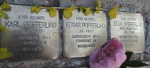 - Hier wohnte, Edgar Pfifferling, Jg 1917, deportiert 1943, ermordet in, Auschwitz